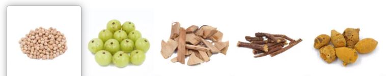 අමුද්රව්ය: කඩල, නෙල්ලි, සඳුන්, කස්තුරි කහ/වල් කහ වැල්මී.